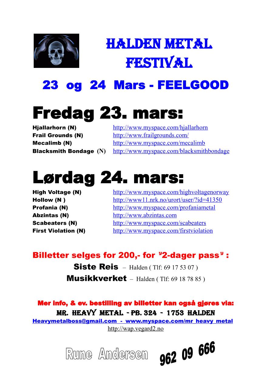 fest i Halden på Feelgood 23. og 24. mars 2007 Fredag
